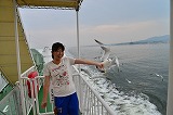 また、フェリーでは、大島名物のカモメの餌やりを体験しました。