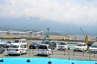 ここは被害の大きさから,市街部は盛り土が10m以上必要なため、山を削って盛り土がいたるところで行われています。