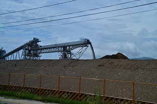 市街に入って、まず目に入ったのが、異様な長さの橋(ではなく土砂を運ぶベルトコンベア)でした。