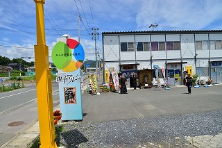 復幸マルシェ(幸という字がよいですね)で各自昼食をとったあと,お土産物を購入しました。「東北の物を購入する