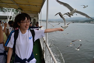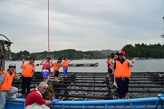 2日目はフェリーで大島に渡り、カキの養殖場の手伝いをしました。木材を運んで並べる作業を手伝いました。その後漁船に乗せてもらい、養殖場の側で話を聞かせてもらいました。美味しいカキを作るためには温度を変えたりと、様々な工夫があるのだそうです。震災でその大切なカキが全て流された時はどれぐらい辛かったんだろう、それを今の状況に戻すのにどれぐらいの苦労があったんだろう、と想像しました。