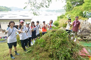 5年前では、ボランティアで埋まった船やドラム缶を掘り出す作業をした。それから5年が経ち、今では、牡蠣の養殖が出来るようになった。