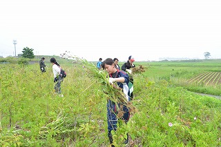 また、海岸にだけ育つ植物を保護する活動のお手伝いをしました。津波によって植物も流れてしまい、