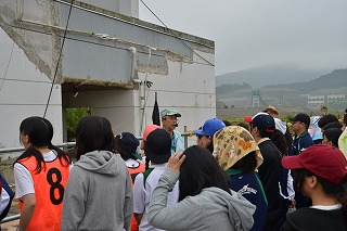 3日目の午前は朝のうちに民泊の方に、集合場所の月立小学校まで送っていただき、その後は陸前高田旧道の駅で新沼さんのお話を聞きながら市内をバスで見学しました。