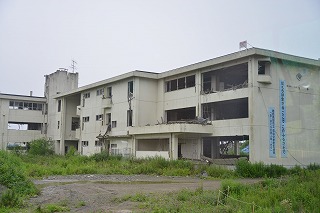 陸前高田旧道の駅付近には、旧道の駅はともかく、校舎全てが津波に覆われた中学校や、最上階以外は大破したアパートなど、至るところに震災の痕跡がありました。
