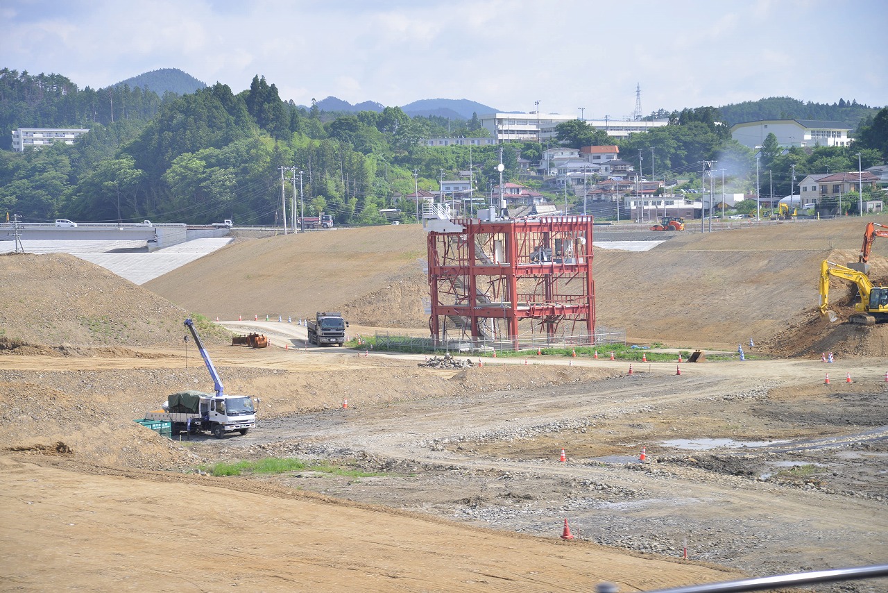 町のほとんどはかさ上げをして高台に移転する予定で工事をしているが、7年経ってもなかなか進まない状況にある。