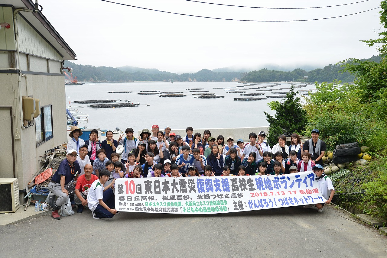 午後からは、気仙沼市のエースポートからフェリーに乗って大島に渡り、牡蠣の養殖場を営んでいらっしゃるヤマヨ水産さんでお手伝いをさせて頂きました。本業である牡蠣の養殖の復興を優先したため、手が回りにくくなったお庭の草抜きや、冬から始まる牡蠣の出荷のための下準備のお手伝いをさせて頂きました。また、牡蠣の養殖場の見学もさせていただくことが出来ました。大島の港から、作業場まで向かう途中に震災で発生した山火事のあとがそのままに残っていて、復興が進んでいる市街地との違いを感じました。また、東北放送の方のお話の中で、「思い出すこと」が1番の復興になるということを聞き、過去に、養殖場を営んでいらっしゃる小松さんが「忘れられることが1番辛い」とおっしゃられていたのを思い出しました。震災から7年経ち、当時小学生だった私達も高校生になりました。決して震災のことを忘れているわけではありませんが、やはり記憶の中で薄れてしまったり、風化してしまっていることも事実です。これからは東日本大震災を知らない、経験していない世代も増えてきます。その中でこの出来事を伝え続けていくことが、私達、東北プロジェクトの参加者の義務だと思います。来年には、大島に向かうための大きな橋が開通します。この橋は、大島に住んでいらっしゃる方々の50年以上前からの希望が叶ったものです。この橋は大島における復興が形となったものだろうと思います。初日は被災地の復興について改めて考えさせられる1日でした。
