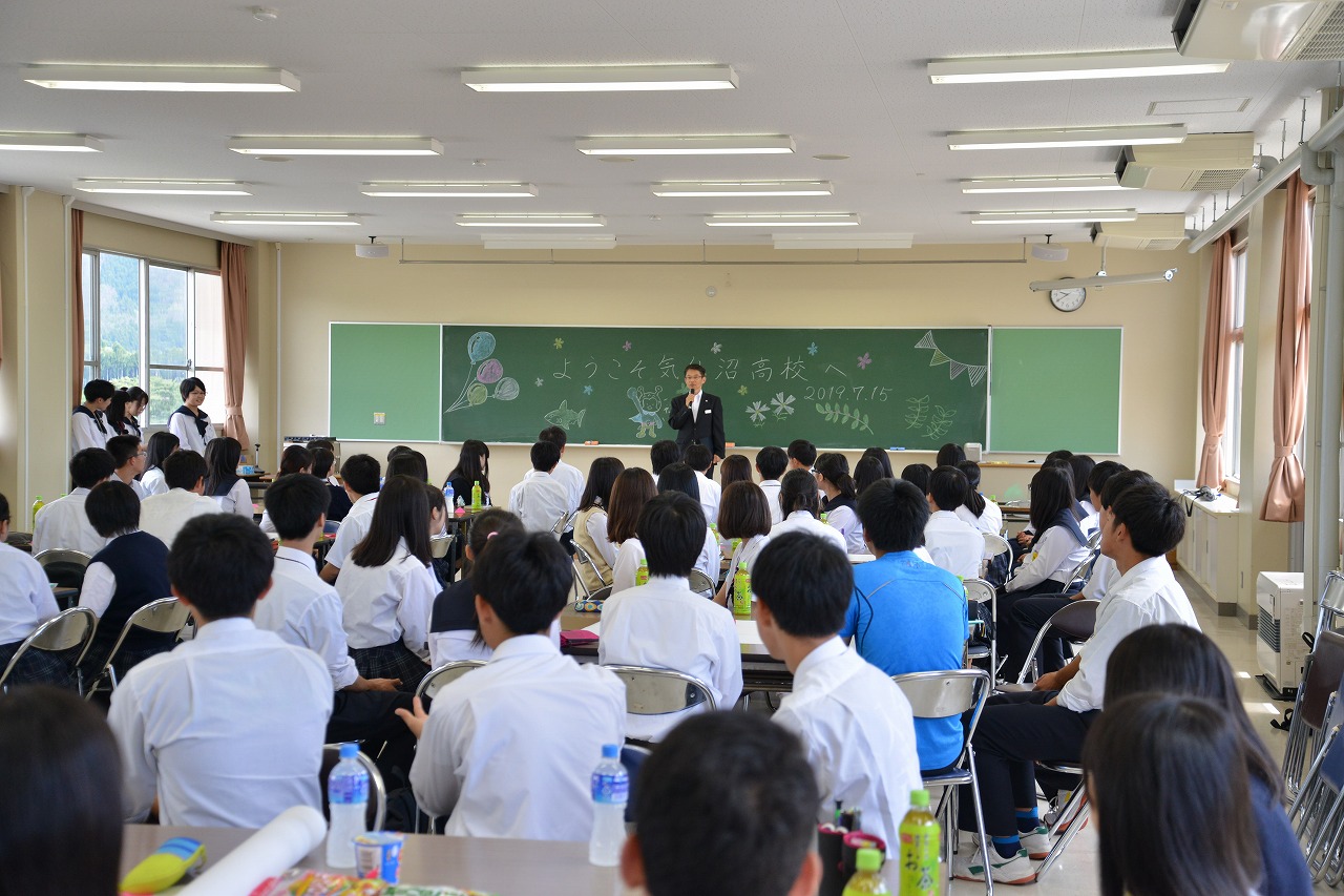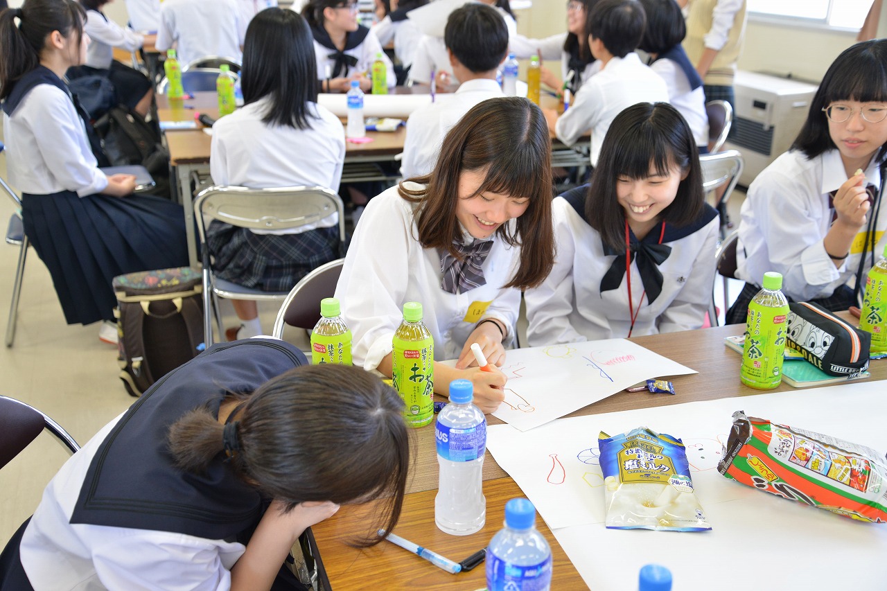 アイスブレークも楽しく取り組み、さまざまな高校の生徒たちが積極的に意見を出し、最後には仲良く記念撮影をしていました。お見送りを受けた後、大阪に向かいます。