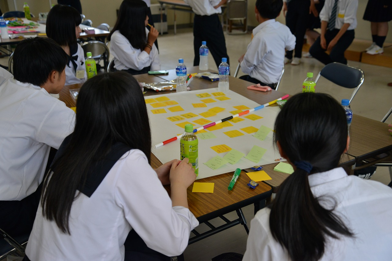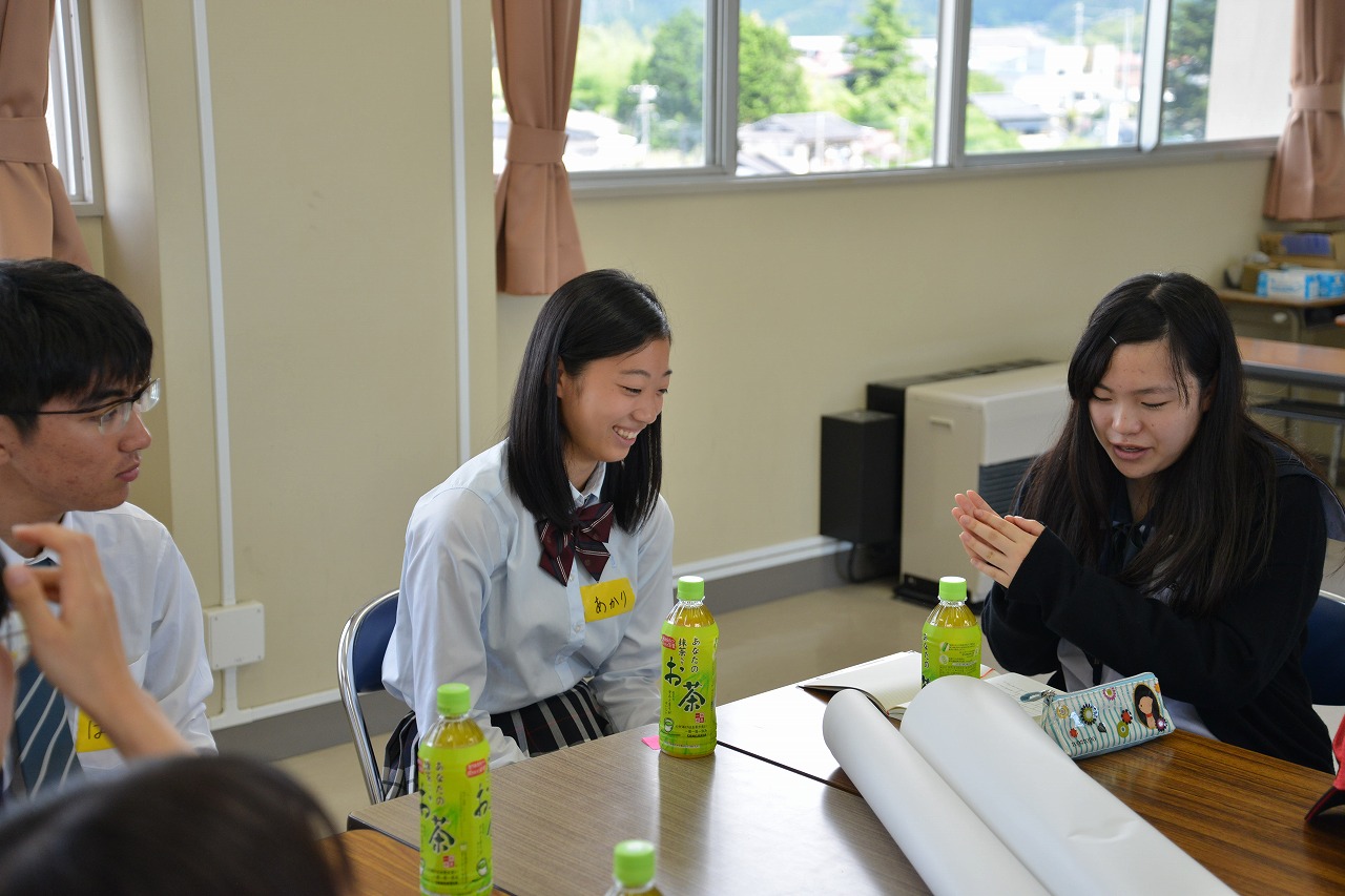 今日は気仙沼高校と交流を行いました。班別に分かれ、学校生活について討議しました。