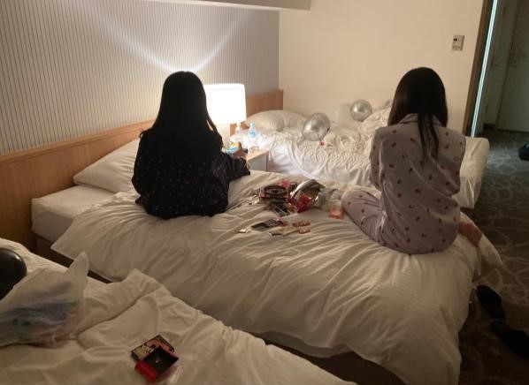 ホテルは1部屋3人から4人で、班のメンバーと楽しい時間を過ごすことができます。写真のように綺麗な部屋で、ベッドも大きくて、自由時間や夜に友達とゴロゴロできます。点呼前は部屋移動も可能なので、他クラスの友達と過ごすこともできます。カメムシが入ってくるので窓を開けるのは禁止です。 |
