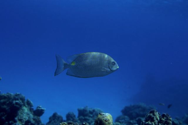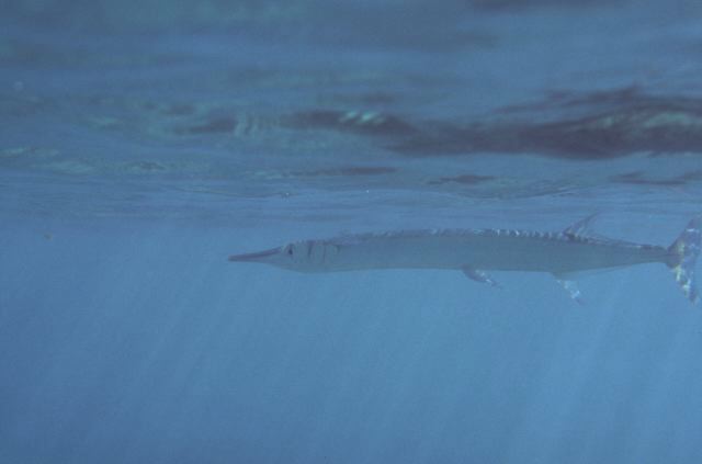 小魚を食べる捕食性の魚。広い大海原では隠れる場所はないように思えるが、水面直下を背が青く、腹が銀色の魚が泳ぐと背景にとけ込んで判別しがたくなる。これを、Counter shadingと呼ぶ。全長1m近くになり、そのダッシュ力は凄まじく尾だけ水中で動かして、体がほとんど水面から出てしまうTail Walkという泳ぎ方までする。一度見ると忘れられない、慶良間諸島渡嘉敷島で撮影。
