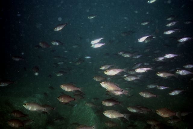 全長10cmに満たない小魚が、食べられないで生き残るのは至難の技である。ネンブツダイは夜行性で、昼間は大きな群をつくって岩陰で過ごす。群れをつくると、どの方向から捕食者が来ても早く気付きやすい。また、襲われたときに自分が餌になる確率は群が大きくなるほど小さくなる。愛媛県の宇和海で撮影。