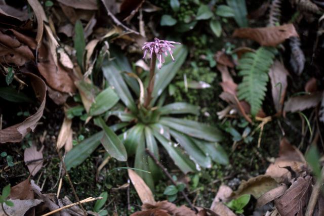 山地の少し湿った土地に生える多年草、地下茎は短く、根から出た葉を多数開出して冬を越す。花茎は高さ10〜30cm、結実するときには50cmに達する。花期に新しい葉が花茎の横に出てロゼットを形成する。