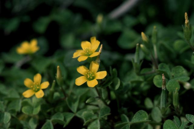 庭や道ばたにごくふつうな多年草、世界中に分布する。茎は地上を這い、葉は長い柄で茎から立ち上がる。葉腋から長い花柄を出しほぼ散形に1〜8個の黄色い花をつける。