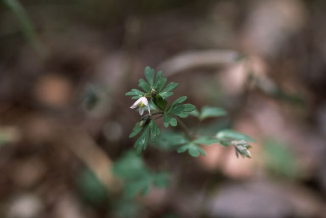 藪のへりや石垣に生える多年草、茎は高さ20〜35cmになり三出複葉をもつ。小葉は2〜3裂し、花期は4〜5月。