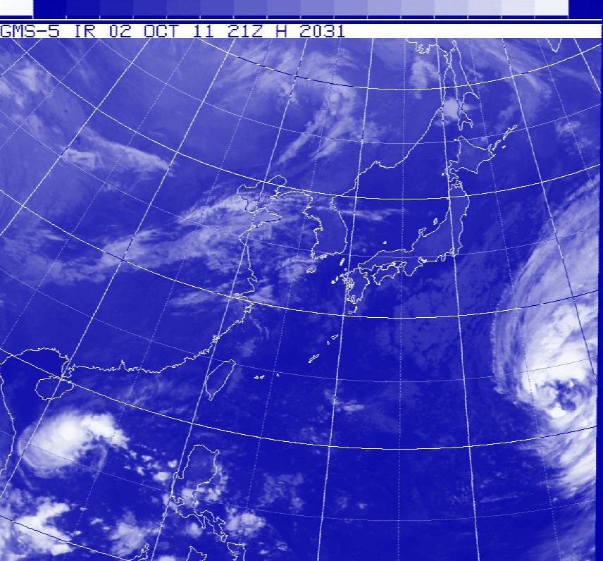 H:日本付近の赤外画像 I:日本付近の可視画像