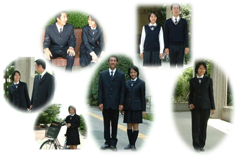 ネクタイもしくはリボンで、3色(紺色、水色、えんじ色)から選んでいただけます。オプションとして、セーター、ベスト、カーディガン、女子スラックスがあります。