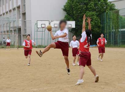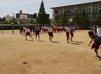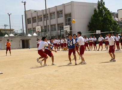 5月には球技大会があり、バレーボール、ソフトバレーボール、ハンドボール、ドッジボール、ミニサッカーの試合をクラス対抗で行います。多くのクラスがこの日に向けてお揃いのTシャツを作るなど、クラスの応援にも力が入ります。