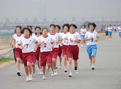 「断郊」とはクロスカントリー(横断郊外)のことで、学校のすぐ近くを流れる淀川の河川敷を男子は10km、女子は7km走ります。卒業生の漫画家、手塚治虫さんも自らの作品の中で、断郊のことを描いておられます。