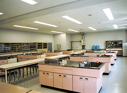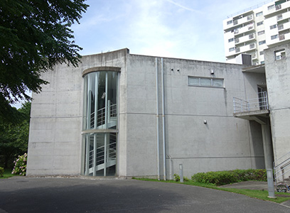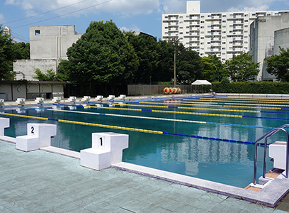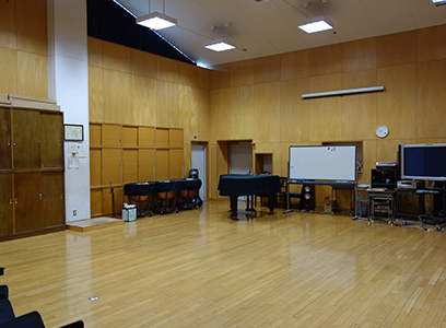 (左)数少ない50mプールです。普段は横に使っています。(右)音楽室の天井は非常に高いです。