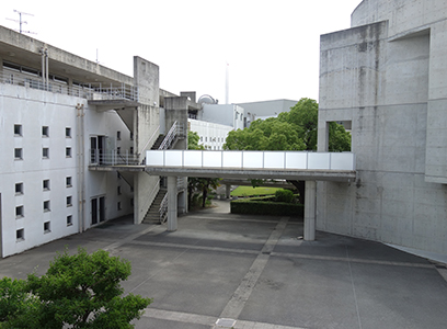 (左)今なお戦争の惨禍を残すメモリアルウォール。(右)ダンス部の練習他、六稜祭で様々なイベントが行われる中庭です。