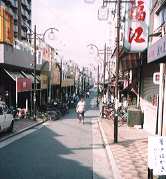 昔ながらの懐かしい商店街です。お店が在校生やOBの家だったりします。スーパー、手作りギターに手作り豆腐のお店、きれいに並んだ果物のお店、買い物がてらにゆっくりコーヒーでも、、、。