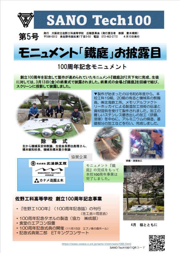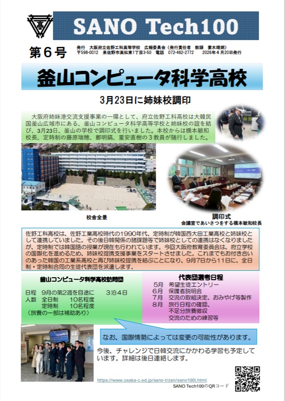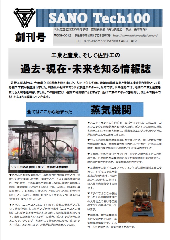 佐野工科高等学校では創立100周年を記念して機関誌を作成しています。 大阪府立佐野工科高等学校 copyright©2013 Sano Technology High School all rights reserved.
