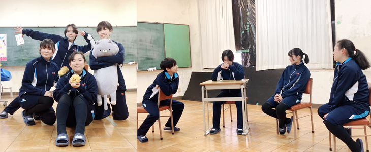 私たち演劇部は現在、5人で活動しています。活動内容としては、校内演劇や地域の児童福祉などでペープサート劇をさせてもらっています。また、文化祭などの照明をしたりしています。