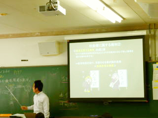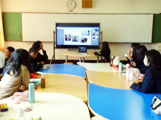 電子黒板利用しインターネットを通じた海外からの遠隔授業などを実施しています。