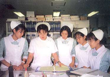 | 生徒は、一年生から毎年臨床実習を 重ねています。指導者による適切な指導、 助言を得て看護を実践する毎にめざましい成長が見られます。 | |