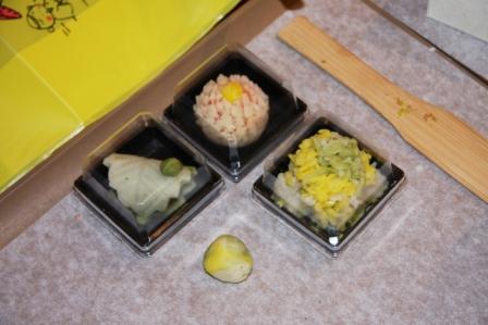 和菓子の練りきりは、苦労して3個作りました。和菓子職人の大変さを知ることができました。
