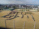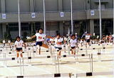 | 1年生のマスゲーム 一糸乱れぬ見事な演技! 体育の授業中も練習しました。 こんな本格的?な種目も 行われていました。 |