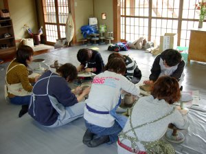 習いたての説明に従って、思い思いにお皿やマグカップ、湯飲みや