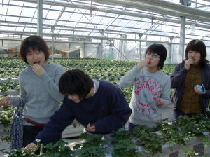 昼食を終え、午後は雪中いちご狩りに向かいました。