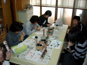 胴体に絵付けをしました。それに教室の方にロウを塗ってもらい完成。