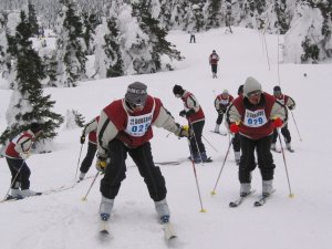 午後には雪の舞う天候になりました。生徒たちは、スキーだけでなく、山の天気の