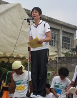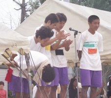 お礼を述べる応援団長
