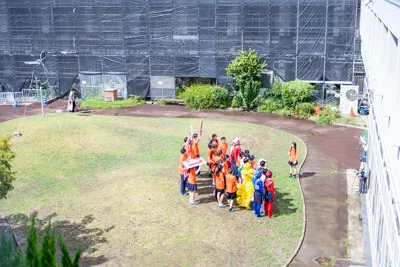 4つの団に分かれてパフォーマンスや競技で競います。団はそれぞれ色で分けられ、競技の部、立て看板の部、パフォーマンスの部で表彰されます。目玉種目のリレーでは多くの観客が沸き立ちます。